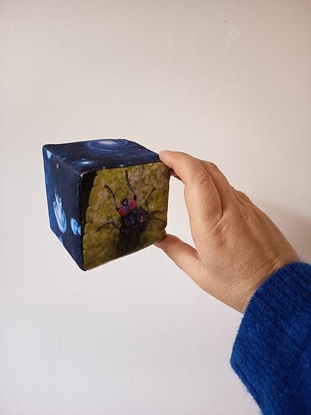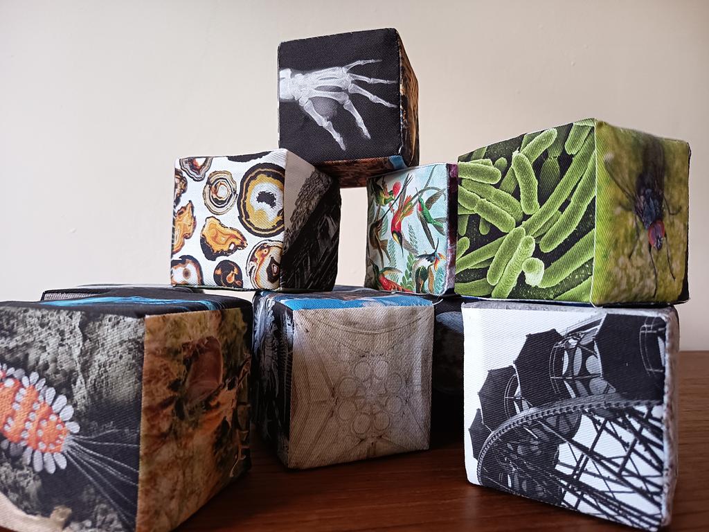 prestations réalisées : 10 dés : impression tissu et couture