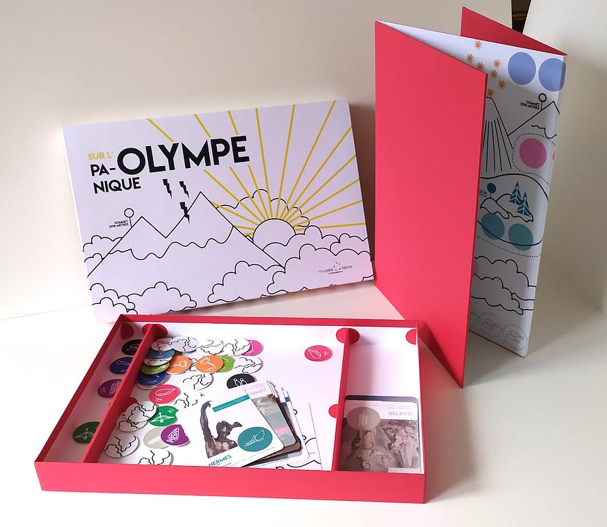 Le jeu panique sur l'Olympe est un jeu de plateau qui permet aux familles, dans les salles ou à la maison, de découvrir les principaux Dieux de l'Olympe à travers les oeuvres du musée Fabre.